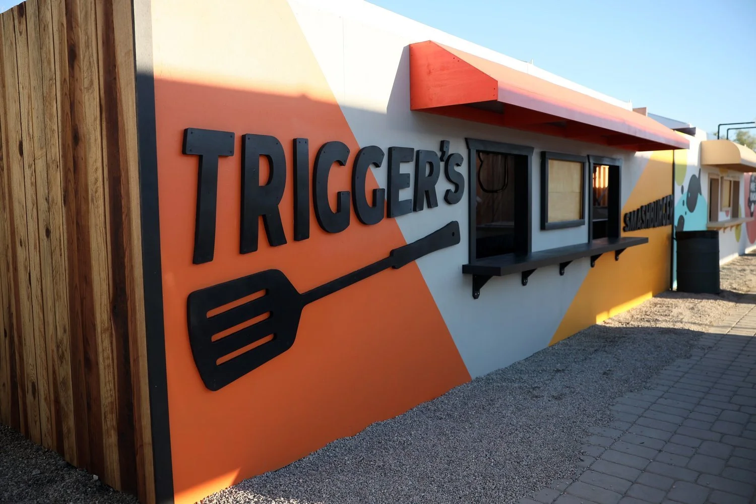 Desert International Horse Park food vendor facade fabrication. Semi-permanent branded facades covering existing vendor tents. Designed distinctive vendor styles with DIHP partners, built from treated lumber for multi-season durability in desert environment.