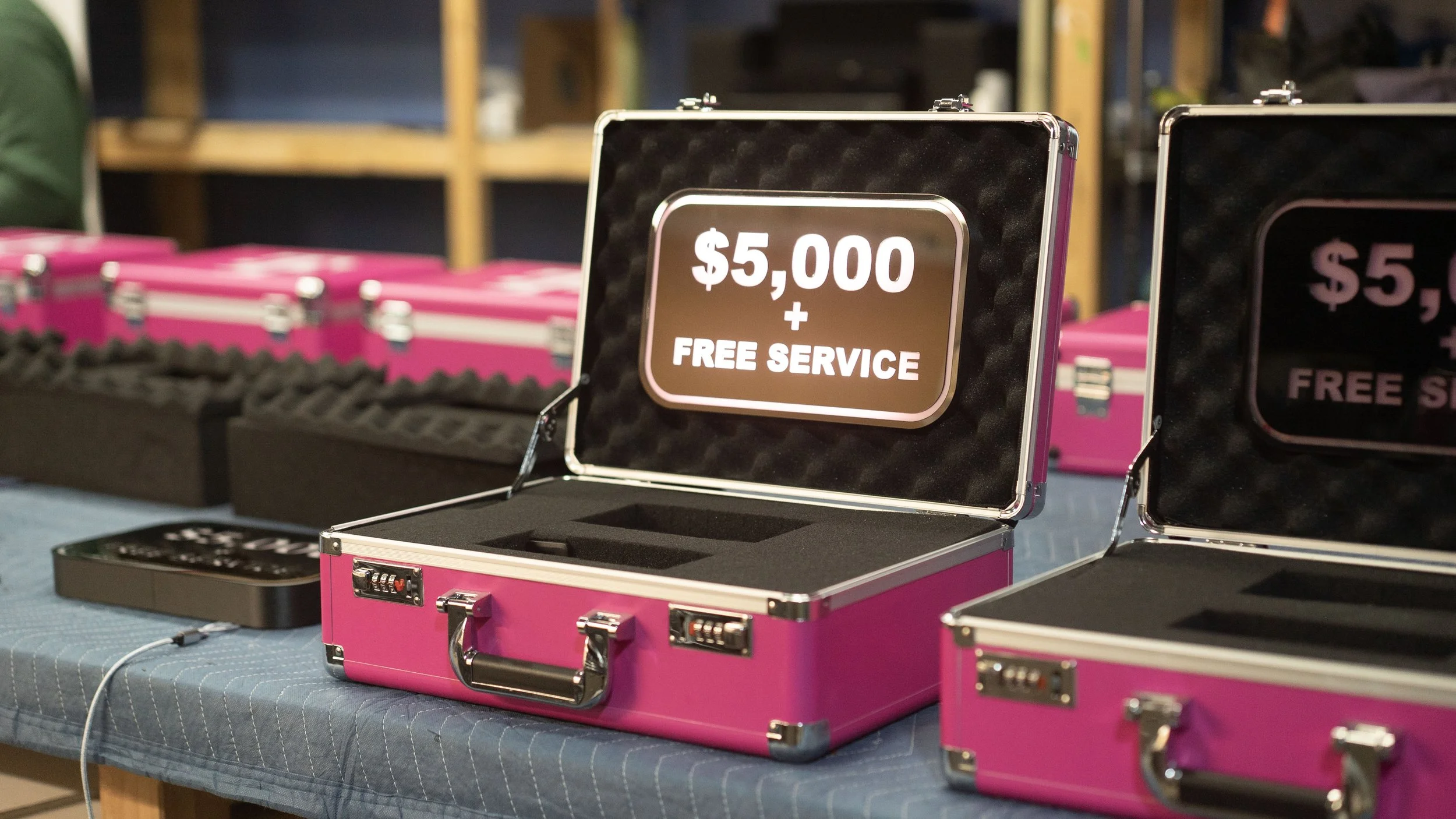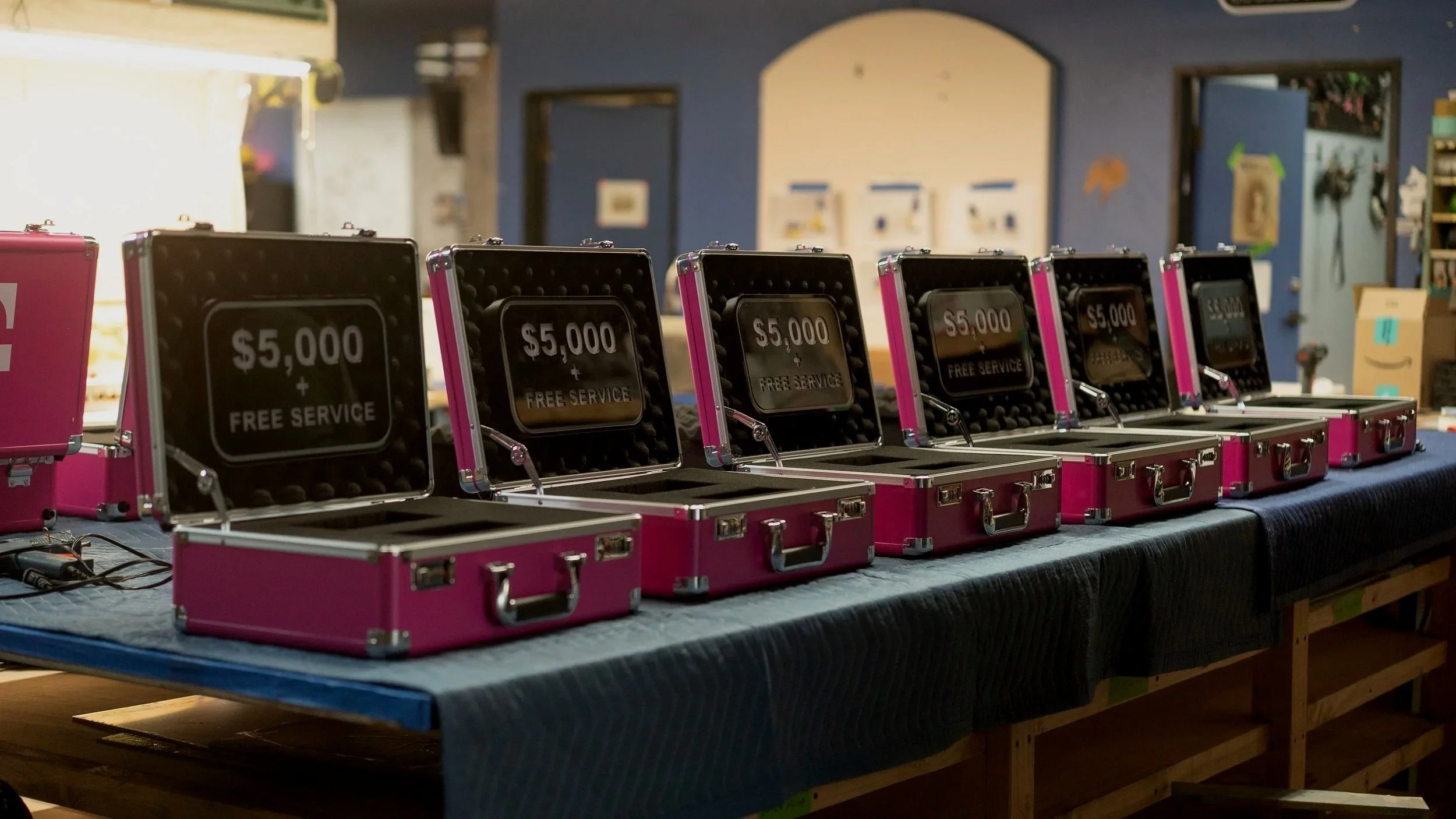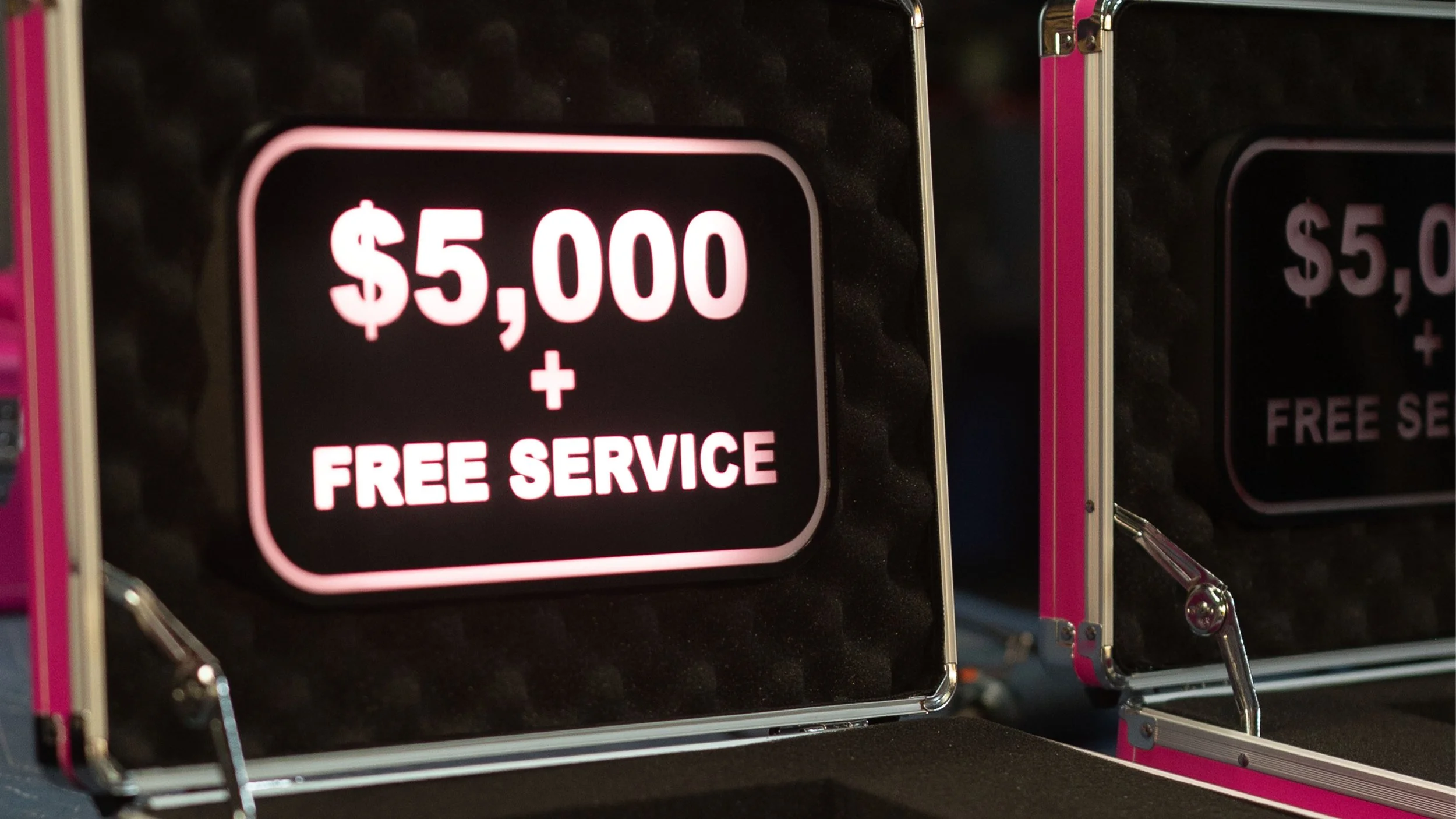 Beast Games custom prize boxes sponsored by T-Mobile. Removable interior lightbox sign, durable automotive vinyl wrap for fast delivery, and take-home winner keepsakes to commemorate participation on the show.